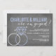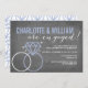This Engagement party invitation features a modern look on a chalkboard background. Opt for a textured paper or die-cut shape to make this invitation stand out.