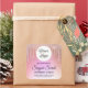 Elegant product sticker label featuring diamond drips over rose gold background.