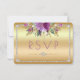 Beautiful purple sparkle watercolor flowers and faux diamonds bling frame gold gradient RSVP card. If you need any assistance customizing your product please contact me through my store - via this page - and I will be happy to help. I have used artwork from: www.CreateTheCut.com. I have matching products in my store. PLEASE NOTE: These are flat printed graphics - no raised parts.