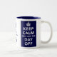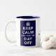 A mug with a parody of the 1939 government public information poster bearing the words 'Keep Calm And Take The Day Off' in white text.