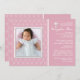 A lovely diamond-lace pattern on the left half of the invitation has a double framed photo window. The other half is solid pink and holds your sentiments. The cross can be dragged to any location, made larger or smaller or eliminated making this invitation suitable for any occasion.