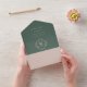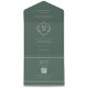 This evergreen wedding invitation features a modern diamond-shaped monogram at its centre, with the bride and groom's initials prominently displayed. The monogram is surrounded by classic typography in ovory, adding a touch of elegance to the design. Delicate floral details further embellish the invitation, giving it a romantic and timeless feel. The overall design is sophisticated and unique, making it a perfect choice for a stylish and sophisticated wedding.