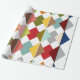 This wrapping paper has a Bauhaus design of overlapping diamonds in retro colors.