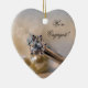 Commemorate the day you accepted his marriage proposal with the elegant Diamond Ring and Pearls Engagement Heart Shaped Ornament. This classy custom We're Engaged Ornament features a close up photograph of a round cut diamond engagement ring and white pearl necklace.