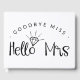 Bridal shower guest book in white with a charming typography design saying "goodbye miss hello mrs" with a diamond over the o to create an engagement ring. Add the bride's name on the spine.