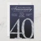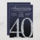 This modern anniversary invitation card features a bold diamond-style number forty set against a deep navy blue background with refined silver accents. The faceted crystal detailing adds contemporary sparkle, while clean lines, smooth gradients, and subtle light textures create a polished and elegant look. The modern navy and silver color palette delivers a formal yet stylish feel, making this invitation ideal for hosting a sophisticated and memorable 40th anniversary celebration.