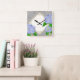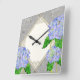 Diamond Swirl Etchings Blue Hydrangea Home Decor Square Wall Clock