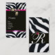 DIAMOND TULIPS PINK BLACK WHITE ZEBRA FUR MONOGRAM BUSINESS CARD