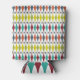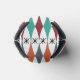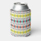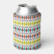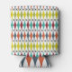 This can cooler has a mid-century modern design of stretched diamonds and starbursts on a field of white.