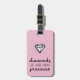A luggage tag that will appeal to the ladies especially with its words of encouragement and inner strength. It is a typography lettering design with words that read "diamonds are made under pressure" in handwritten brush and casual lettering and illustrated with a diamond. Pink background can be changed.