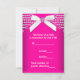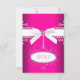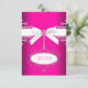 Hot pink diamond white bow hot pink Quinceanera RSVP. This elegant hot pink birthday party invitation is easily customized for your party or event by adding your event details, font style, font size & colour, and wording. Please note - all of the cake toppers, cards and invitation designs you will find on Zazzle are printed graphics with no actual jewels, bows, raised, embossed, or added parts or pieces.