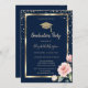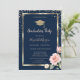 Diamonds Gold Grad Cap Roses Navy Blue Graduation Invitation
