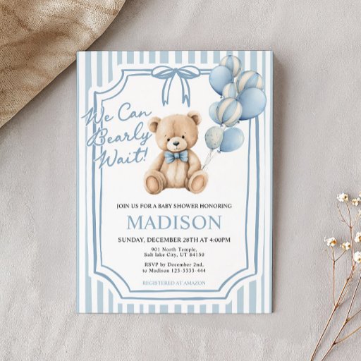Add a sweet touch to your baby shower with this Blue Bear Diaper Raffle Card! Featuring a cute watercolor teddy bear in soft blue tones, it invites guests to bring a book instead of a card. Easily personalize the text, choose from premium papers and sizes, and enjoy fast printing and shipping. A perfect match for any boy baby shower theme!