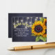 Rustic midnight navy blue chalkboard end of summer / autumn / fall diaper raffle insert card with a big sunflower bouquet and strings of twinkle lights.