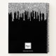A chic black background with trendy faux silver glitter drips, paint dripping look. Personalize and add a name, your monogram letter and a title. The name is written with a large modern hand lettered style script with swashes. To keep the swashes only delete the sample name, leave the spaces or emoji's in front and after the name. White and grey text. Use it as a diary, journal, for taking notes, for school, work or your home office.