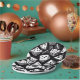 This dynamic digital artwork features an array of tumbling dice against a stark black background. The dice vary in shape and size, including traditional six-sided cubes and triangular four-sided forms. Each die is meticulously detailed, with sharp contrasts between the white surfaces and black pips, creating a striking visual effect. The chaotic yet harmonious arrangement of the dice evokes a sense of motion and randomness, making the piece both intriguing and playful.