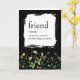 Bold white dictionary definition for a FRIEND on black with a wildflower border for a friend's birthday.