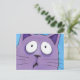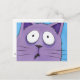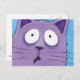 Uh-oh! Did I hear someone mention the dreaded 'B' word?! ...Time to scram. Funky purple scaredy cat postcard. Original artwork: acrylic on canvas 2008 Lisa Marie Robinson