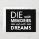 Die with Memories not with Dreams Postcard