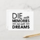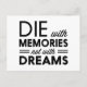 Live out your dreams before you die with this Die with Memories not with Dreams design.