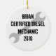 This has am image of a large wrench behind the words "Diesel mechanics have bigger tools" and also has a wrench on the other side too with the words "Brian is a certified diesel mechanic 2010" that you can change to say what you would like it to say. Great for that diesel mechanic in your life.