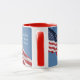 Tasse rouge, blanche et bleue avec les drapeaux américains. On latéral fait bénir à "Dieu l'Amérique" et l'autre côté a "la terre du libre et la maison du courageux." Montrez votre patriotisme avec cette tasse de drapeau américain ! Obtenez un ensemble assorti pour chacun dans la maison ou le bureau. Buvez de votre thé ou le café de ce Dieu coloré bénissent la tasse de l'Amérique.
