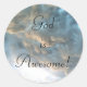 Message inspirant sur autocollant avec nuages orageux et lumière brillant dans l'espoir. "Dieu est génial !" ou utilisez le message de votre choix. Joli sceau pour les notes, enveloppes et cartes.