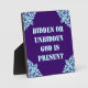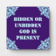 Un coin bleu clair défilent sur un arrière - plan indigo avec la citation "Dieu caché ou non interdit est présent"