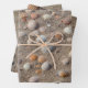 Three different photos of sea shells at a sandy beach as a unique wrapping paper for your presents.