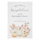 Elegant white pumpkins and fall leaves create a beautiful border at the bottom of this birthday party welcome sign. A trendy font combination gives it a modern aesthetic. All of the text is editable.