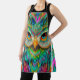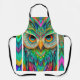 Imagine adorning yourself with an apron that transcends mere functionality to become a piece of wearable art. This apron is adorned with a stunning digital art depiction of an owl, intricately designed to captivate and inspire. The owl's feathers are a symphony of colours, blending seamlessly from earthy browns to vibrant oranges and blues, each shade meticulously placed to highlight the bird's grace and beauty. Its eyes, bright and penetrating, seem to follow you as you move, imbuing the apron with a sense of watchful wisdom and enigmatic charm.