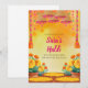 This DIY Haldi invitations template Dholki invite or Pithi invitations, a fusion invite in traditional elegance, is complemented with florals & leaves, perfect for your Haldi ceremony celebrations