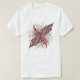 A dynamic, sharp, and cross-shaped tribal ornament, bursting with swirling red and black traditional motifs, outlined and connected by futuristic circuitry.