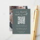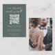 Simple, stylish wedding digital wishing well photo enclosure card in a modern minimalist design style with an elegant natural script typography in classic white on a sage green background, with an informal handwriting style font. The design can easily be personalized with your title, payment details (Zelle, Venmo, Paypal), scannable QR code, message and photo for a unique one of a kind wedding design. The image shown is for illustration purposes only to be replaced with your own photo. The placeholder image is of a happy couple. If you need any help customizing this product, please contact me using the message button and I'll be happy to help.