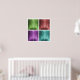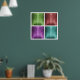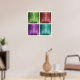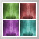 Design features four different coloured versions of a digitally enhanced and embellished ap lumbopelvic x-ray.