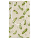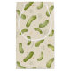 Whole green dill pickles accented with sprigs of dill herb and dots of brine on a textured pale yellow background.