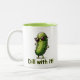 Add a slice of fun to your morning routine with this playful 'Dill With It!' pickle mug. Featuring a cool pickle character complete with sunglasses, this mug is a humourous nod to those who take life with a pinch of salt (or dill). Ideal for coffee, tea, or even pickle brine, if you're so inclined. It's perfect for anyone who loves a good pun or just needs a little encouragement to 'deal with it' in a light-hearted way.