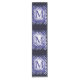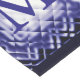 Reminiscent, of a Moroccan-style carpet, this abstract, monogram design, is displayed in-glowing colours, of navy-blue, lavender, black, and white.