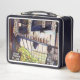 This is a standard metal lunchbox that appears to work just fine. We designed this box ourselves with an uploaded photo and custom text on the front and back. It looks absolutely beautiful except the front of the lunchbox is not centered like it shows in the photo. The print borders don't align with the inset flat part of the box where the preview photo online showed it perfectly centered in there. The back looks nice and centered though.