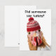Dindon portant un chapeau tricoté rouge sortant la tête pour dire "Est-ce que quelqu'un a dit dinde?"