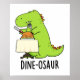 Dine-osaur Funny Dinosaur Pun features a cute dinosaur acting all prim and proper sitting at a table dining on a roast chicken. Perfect Puns gift for family and friends who love cute dinosaur puns.