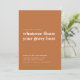Si vous aimez les neutres, cette invitation de style simple est à votre portée. L'invitation présente un design élégant, avec un arrière - plan orange doux et brûlé. Au centre, les détails de la fête sont magnifiquement scénarisés dans un texte blanc dégageant un air de sophistication. Le texte amusant "quoi qu'il fût de votre gravier" donnera un coup de fouet à vos invités avant même qu'ils ne se présentent. Bienvenue invités à votre soirée Thanksgiving en style. La couleur et le texte de l'Arrière - plan sont modifiables.