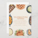 Célébrez Thanksgiving avec style et chaleur ! Cette invitation magnifiquement conçue présente un éventail de plats délicieux ornant les bords, créant un cadre festif pour vos détails de fête. De la dinde dorée rôtie aux légumes de saison vibrants, chaque assiette de nourriture ajoute une touche de charme et d'appétit appétissant. Au centre, il y a suffisamment d'espace pour inclure toutes les caractéristiques de votre événement, ce qui permet aux invités de noter facilement l'heure, la date et l'emplacement de votre réunion. Parfait pour donner le ton d'une fête d'action de grâces mémorable, cette invitation est une façon délicieuse pour les proches invitations à votre table.