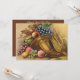 Facile à customiser Dîner Thanksgiving invitation. Ajoutez simplement vos infos ! Si vous voulez changer la couleur de l'arrière - plan ou la police, cliquez simplement sur "customiser". Illustration vintage Carte postale Thanksgiving avec une femme et une cornucopie de fruits avec le texte "All Thanksgiving Bounty Be Thine."