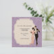 Excellent dîner unique et invitation à la soirée dansante. Image romantique d'un couple en train de danser. Le gentleman est habillé d'un costume noir avec des queues et la dame est habillée d'une robe rose pâle. Cette invitation a un arrière - plan damassé de bruyère. Facilement personnalisable pour ajouter vos propres détails de fête. Chaque invitation du dîner et de la soirée dansante est doté d'une enveloppe blanche.