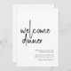 Si vous aimez le classique, cette invitation au style simple et accueillant vous conviendra parfaitement. L'invitation présente un design élégant, avec un arrière - plan blanc aux détails délicats de la fête magnifiquement scénarisés dans un texte noir dégageant un air de sophistication. Bienvenue invités à votre dîner de répétition dans le style. La couleur et le texte de l'Arrière - plan sont modifiables.