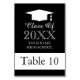 Dîner de fin d'études carte de numéro de table personnalisée. Signes personnalisés. Décor de table classique pour les fêtes des diplômés. Aidez les gens à trouver rapidement leur table et leurs sièges. Design noir et blanc avec logo de goût. Décor et décoration chic des tables. Ajoutez votre propre nom de lycée personnalisé et année de classe.