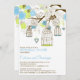 Belle illustration de chartreuse vert et bleu oiseaux et variété de fleurs avec deux inséparables perchés sur un arbre avec une corde de coeur pendante. Cette invitation est parfaite pour les fêtes de printemps, d'été et même d'hiver. Cet invitation est disponible en différentes couleurs.