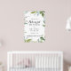 Ce panneau d'accueil pour la répétition de calligraphie verdoyante est parfait pour une simple répétition mariage. Le design est composé de feuilles tropicaux à dominante verte avec une touche de fleurs blanches roses.