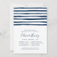 D'élégantes invitations à des dîners de répétition sur la côte présentent une bordure supérieure de bandes dessinées à la main en bleu cobalt nautique. Personnalisez avec vos détails de dîner de répétition sous un mélange chic de caractères de bloc, serif et calligraphie. Inclut l'espace pour la répétition de la cérémonie mariage et le dîner ou la célébration à suivre. Les invitations se retournent vers un motif de minuscules ancres blanches sur bleu marine.